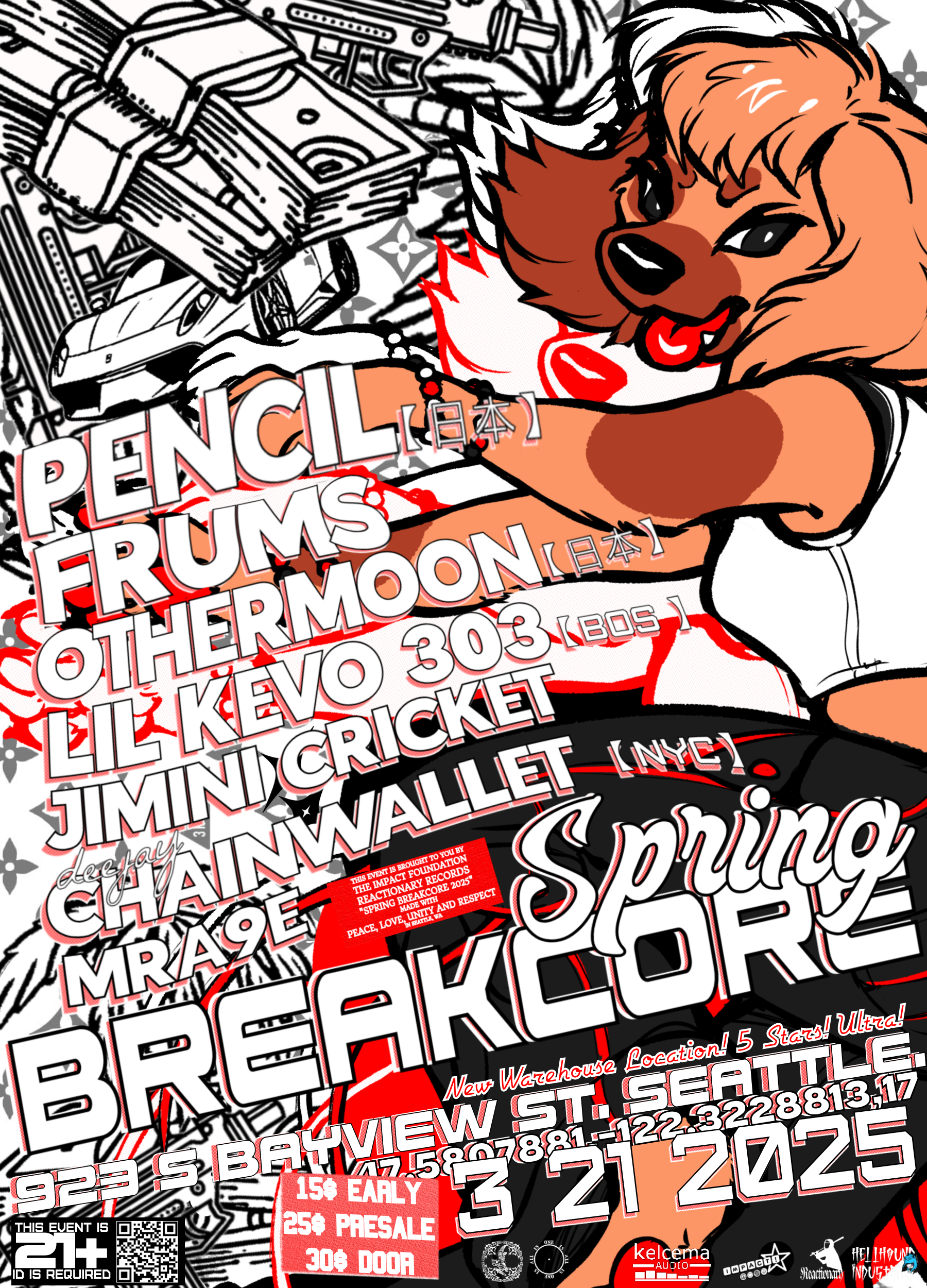 Forget Miami, everyone’s heading to what literally nobody ever has called the “Miami of the PNW” for SPRING BREAKCORE! Organized with the help of Fukdup Records, 909 Worldwide, Reactionary, Spinkick, and with sound, lights, and the warehouse generously provided by Kelcema Audio, we’re bringing back the spirit of Interbayhemoth. International headliners, a new warehouse(!) location, massive sound and lights, don’t miss out on what will be the breakcore event of the year in Seattle. And speaking of headliners…